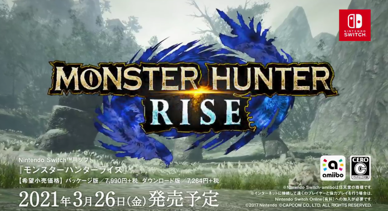 《怪物獵人:崛起》將於3月26日正式登陸Switch,並確定會在2022年推出PC版。