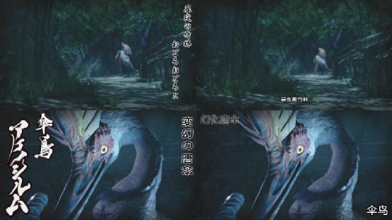 如果從一個新玩家的客觀角度來看,本作最遺憾的,其實便是中文字體的平淡。雖然翻譯者很巧妙地,將些過場動畫里的文字翻譯得非常「有文化」,保留原有風味的同時,盡可能融入了古詩詞的味道,但字體卻沒能配合上應有的風味。尤其在怪物過場動畫里,日語有著絕美的書法字,但中文卻改成了毫無特色的黑體!二者對比,高下立判。中文字體失去了原本日文的氛圍,尤其每段最後的一幕,比起日文來中文簡直毫無壓迫感!雖然這些恐怕都是出於成本考量,但還是不免讓人遺憾甚至有些氣憤。
