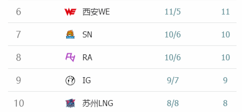 截止3月28日晚,歷經十周常規賽的激烈爭奪,RNG、EDG、TES、JDG、FPX、WE、SN、RA、IG、LNG十支隊伍現已確定進入季後賽,將從4月1日開啟季後賽征程,正式向春季賽冠軍發起挑戰。