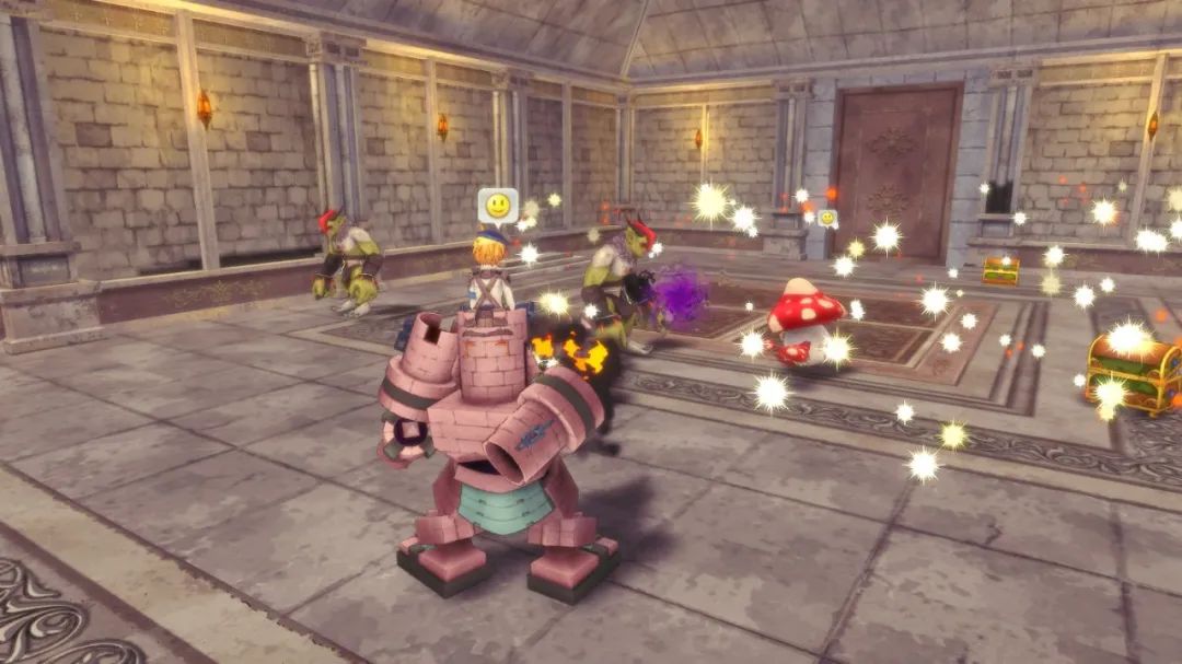 在游戲中,武器有劍、斧、魔杖等8種不同的類型。持續使用同類型武器可提升主角的技能,學會閃避攻擊、蓄力攻擊以及奧義。