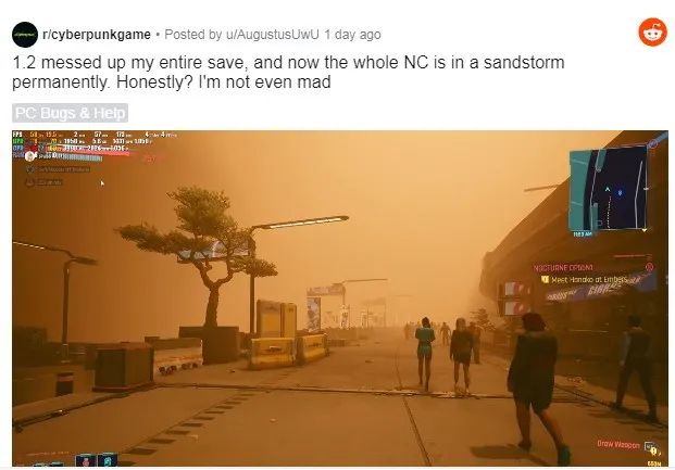 有人遇到動態天氣Bug,城市會永遠處於沙塵暴中。
