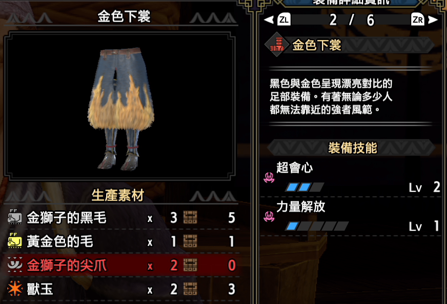 金獅子腿:超會心2,力量解放1,1級孔兩個