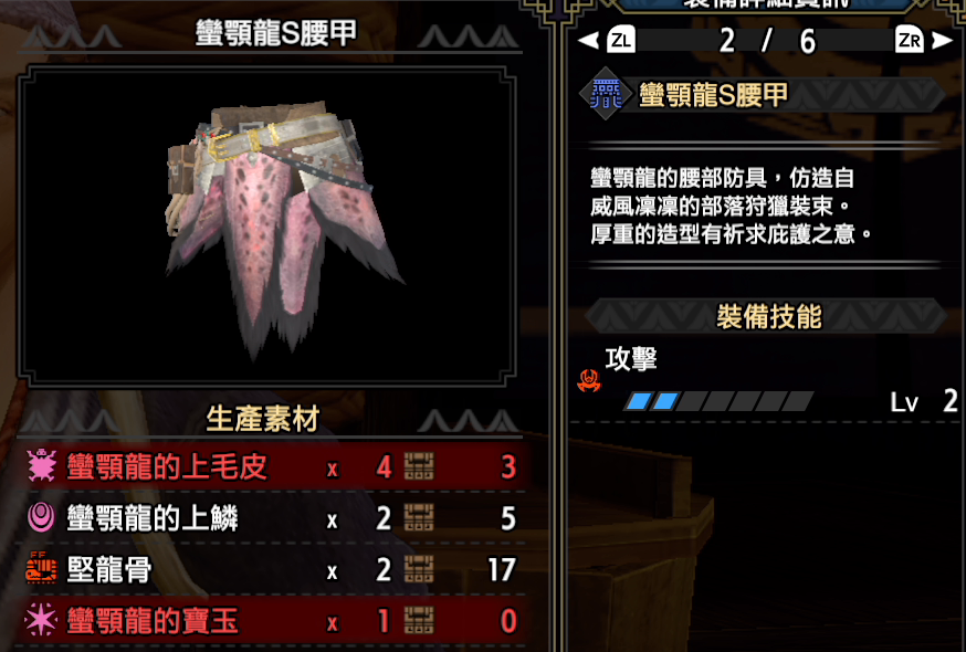 蠻顎龍腰:攻擊2,二級孔一個,一級孔兩個