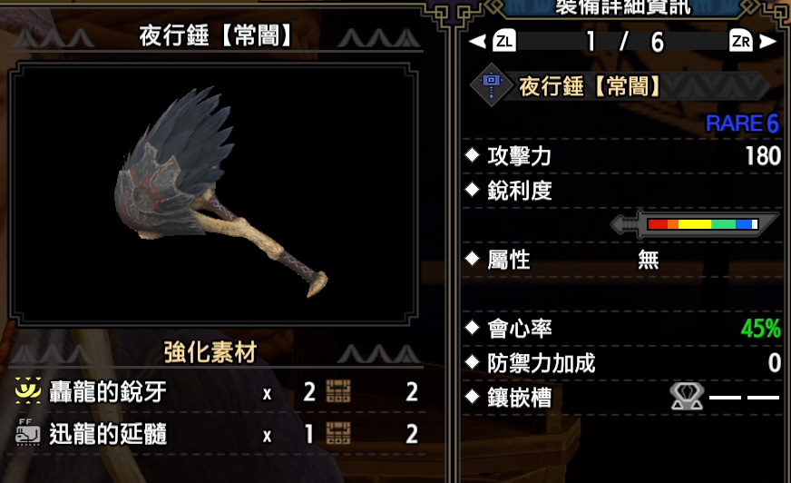 轟龍手:鈍器能手2,心眼1,三級孔一個