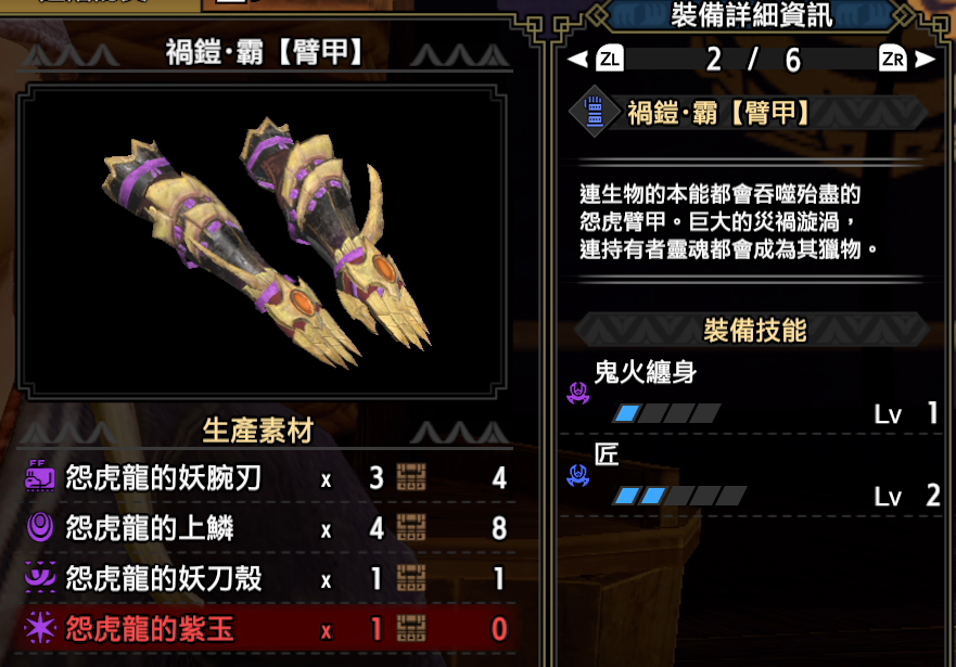 怨虎龍手:鬼火纏身1,匠2,2級孔一個