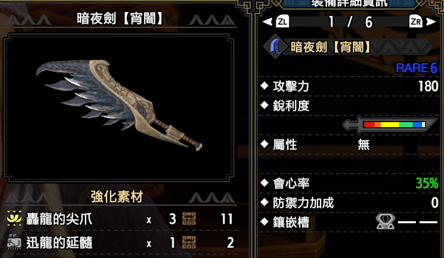 二級孔一個(斬味優秀,會心極高,不過面板略低)