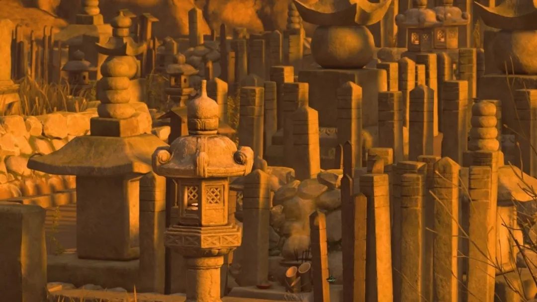 超長焦距還有一個影響是它會把圖像「拍平」。很多人應該都見過那種一個月亮鋪滿一片天的照片,那種照片就很可能是長焦鏡頭拍的。當你把圖像「拍平」時,相片中的物體間距感會被削弱,使它們看起來比實際更貼近,整張照片顯得更緊湊。我拍了一張對馬島的墓地照片,正好可以展示這種效果。