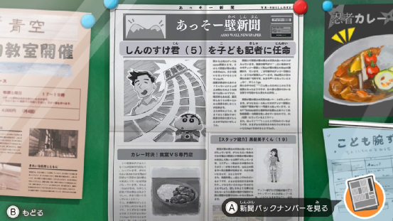 小新還會受「隊長」委託,提供報紙的文章素材。如果入手珍貴的魚或稀有的昆蟲,並將其寫成文章報道,報紙的發行量就會增加。