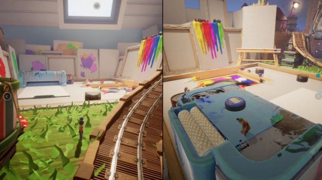 章節:羅斯的房間小節:很久很久以前開局的城堡,順著左手一直走,能到一個有畫板和顏料的地方。左邊有個類似印表機的東西,跳進去會被壓成照片,跳杯。