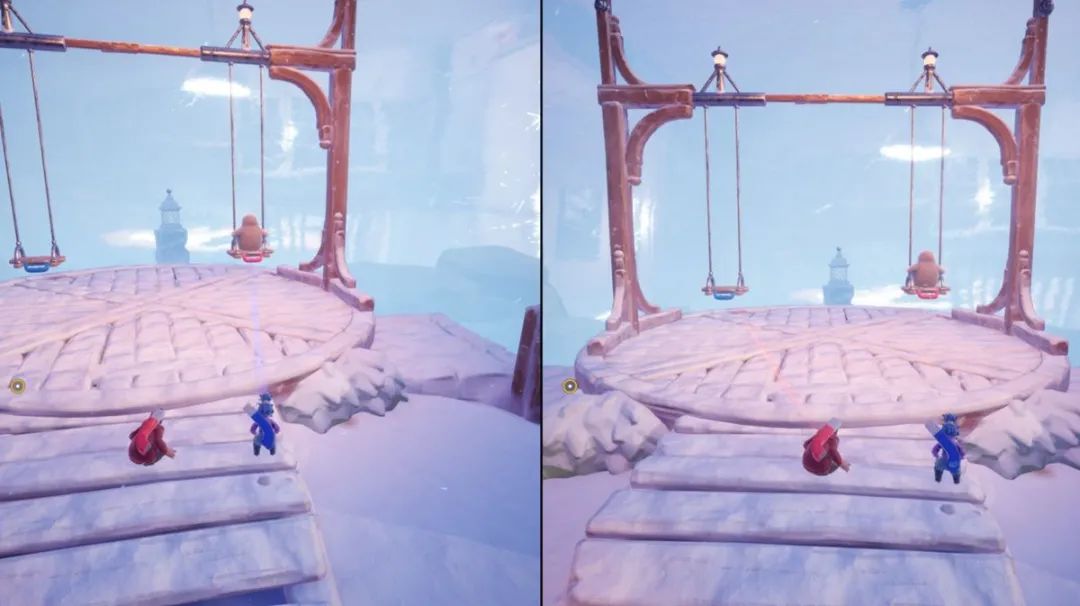 章節:雪景球小節:冬日小鎮在地圖左手邊懸崖有鞦韆可以盪,一直給鞦韆加速把右邊鞦韆上的企鵝甩出去即可,需要把左手邊鍾塔開啟解凍鞦韆。