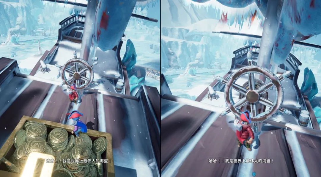 章節:雪景球小節:冰下世界在喂完海豹不遠處有艘海盜船,上船打開寶箱以後一人戴一頂帽子即可。