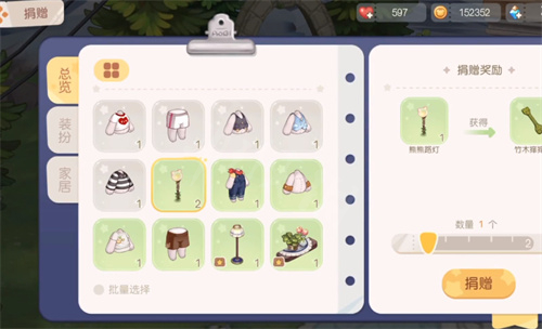 5、點擊該建築之後,我們就可以進入捐贈頁面,選擇自己的任意一個服飾或者傢具捐贈即可。