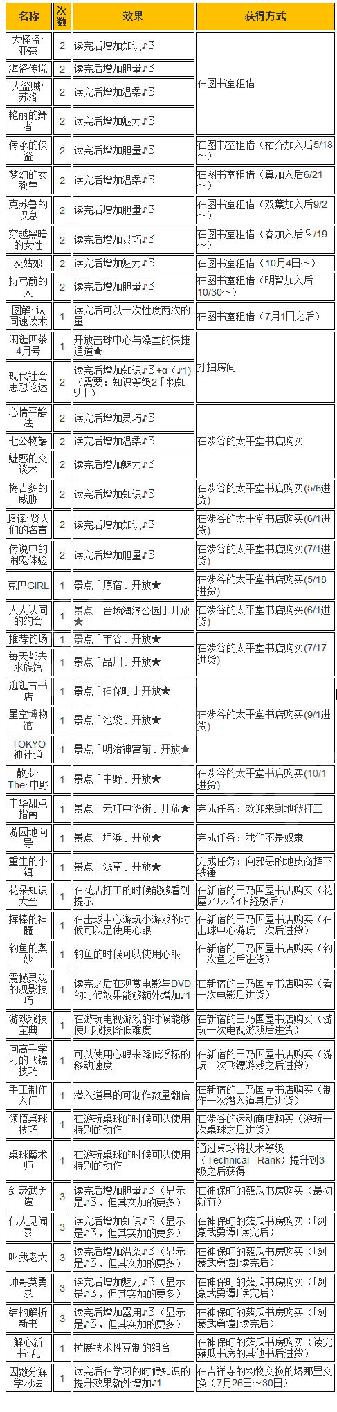在女神異聞錄5皇家版中.我們在自由時間內可以去到圖書館進行書籍獲取及閱讀.不同的書籍閱讀後會對提升
