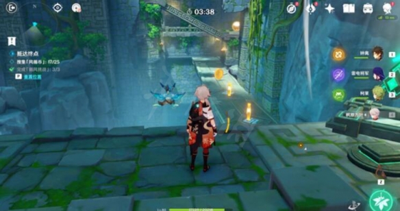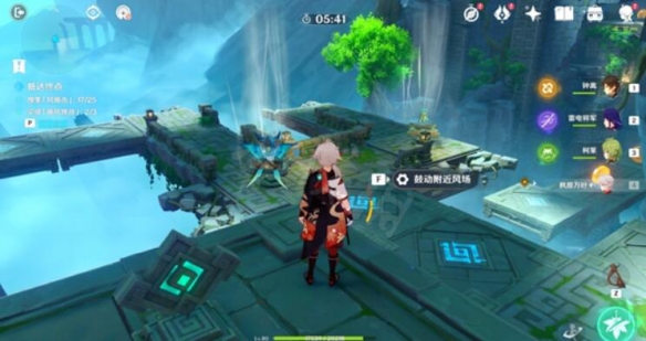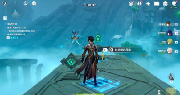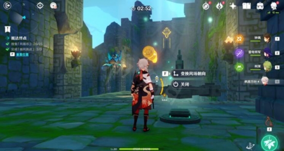 1.首先,我們進入秘境以後,先關閉圖中右側的機關,將風場關閉,隨後將左邊的攔風樞的風場方向調整為向上,隨後往左走。