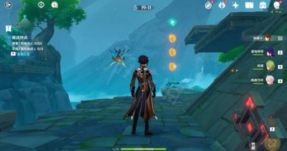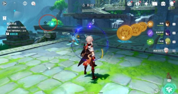 8.隨後來到最後的點位,我們還是需要將風場方向朝上以後,鼓動風場。拾取金幣即可。、
