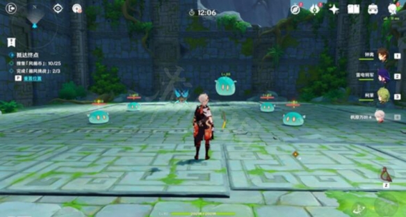 4.當我們來到第三處挑戰時,我們要先從右側的樓梯上去,拾取金幣,擊敗風史萊姆,然後獲得獎勵。