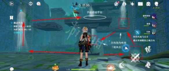 6、關閉全場風場,調整平台下「攔風樞」,按照路線行進。