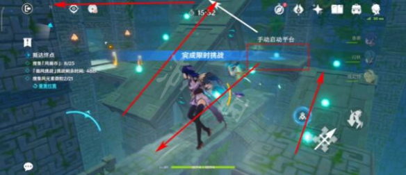 4、按照路線前進即可,注意有兩個平台需要手動啟動(到達指定位置後會自動範圍原位置)。