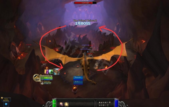 左右兩條路都可以達到一號BOSS,所以只需要事先約好某一條路,猛砸巨龍的技能清理小怪即可。