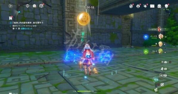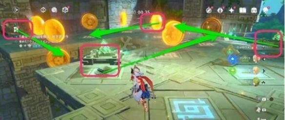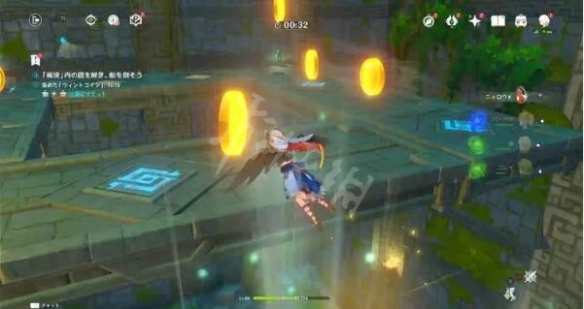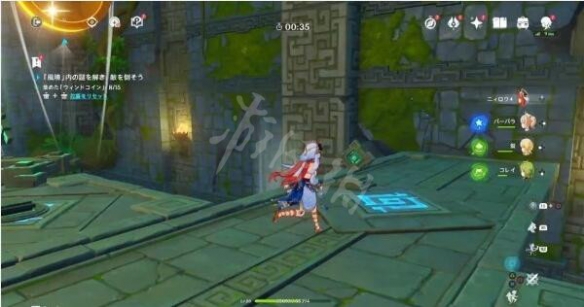1.匙互動開啟挑戰,清怪,然後通過牆邊的風場機關飛到上層。