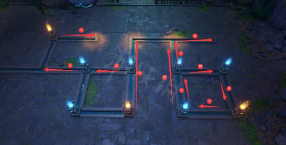 需要玩家將橙色的機關推動至地圖“橙色聚光燈”瞄準的地方。
