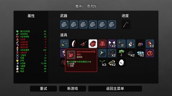 7.最後一關移速過40可以大幅度降低防禦和閃避的需求,所以無論有沒有發電機移速都是要考慮拿的,還有容易通關的道具實際上是那個閃避加攻速的衣服,拿到約等於通關。