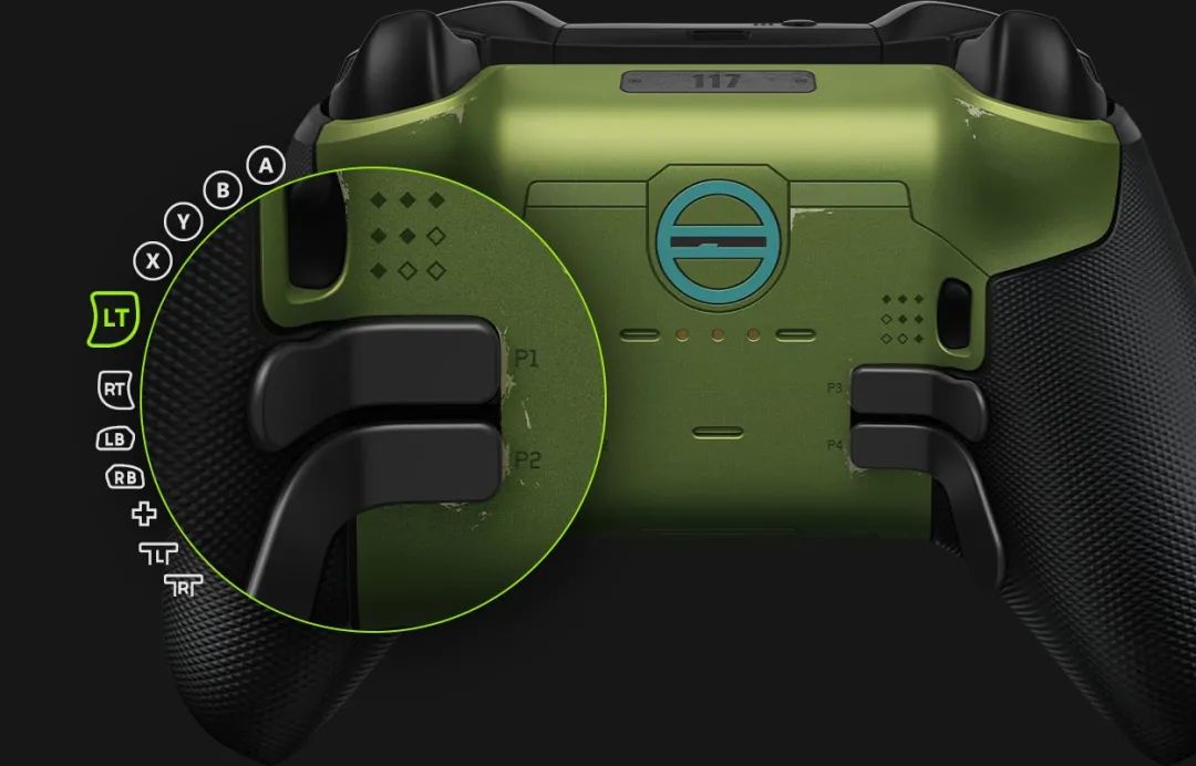 「Xbox Elite 無線控制器 Series 2 – Halo Infinite 限量版」以《光環》系列主角士官長的造型為靈感,具備如同士官長護甲的軍綠色本體與如同士官長面罩的金色方向鍵。承襲第二代精英控制器的特色,提供超過 30 種全新方式,可讓你像職業選手般玩遊戲。使用具有 3 個個別設定的高感應發射鍵鎖,以像超級戰士般的速度發射。利用全新、可調整張力的搖桿提升瞄準度,並且藉由環繞式橡膠菱形握把,保持目標。