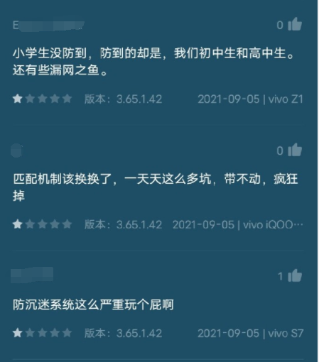雖然這次伺服器崩潰,官方第一時間做出修復並給出補償,但是根據網友反饋,在諸多應用市場中《王者榮耀》的評分都直線下降,在評論詳情中可以發現,這些都是未成年人在被禁止遊戲的時間中,惡意給出的一星低分差評。