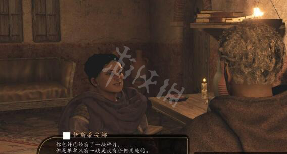 3、與伊斯蒂安對話後選擇符合她心意的回答,就可以開始下一步找到龍旗碎片。