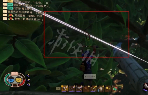 然後我們到了一個繩索的位置,通過繩索滑下去,這樣就能可以到達樹籬實驗室了。