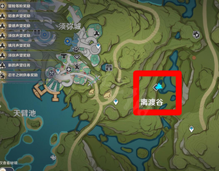 具體就是在須彌城外的錨點處往河谷飛就可以看見了。
