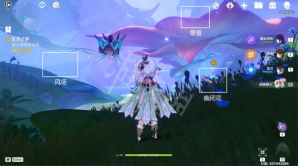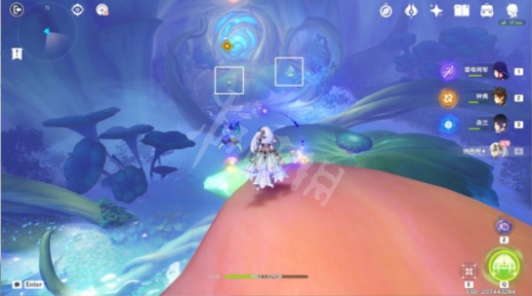往地圖的東南方向走,開啟幽閉花,利用風場,前往清理蕈獸