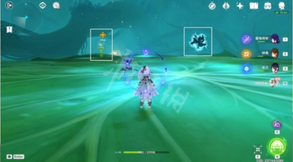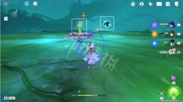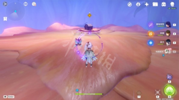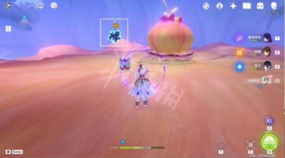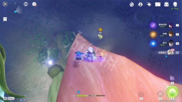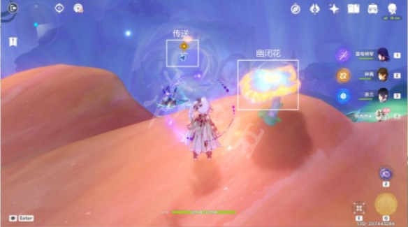 清理平台上所有的丘丘人,往地圖的西南方向走,拾取原石松脂,前往圖中指引傳送