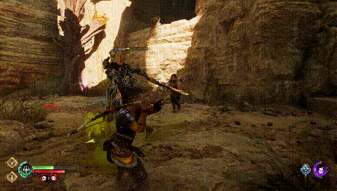 《諸神黃昏》在流程設計上的一大變化是新增了不少操作阿特柔斯的環節,和力量點滿的父親相比,阿特柔斯的戰鬥風格以靈巧和遠程為主,其遊玩體驗和操作奎托斯時有一定差異,其遊玩體驗和操作奎托斯時有一定差異,動作也更加飄逸靈巧。