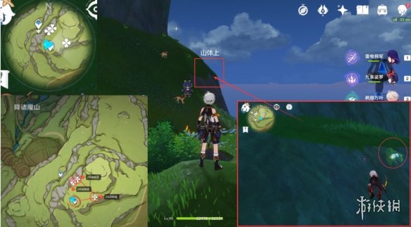 拿完朝著地圖的西南方向看,在前面山體上有兩朵劫波蓮。