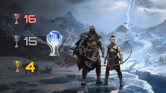 戰神:諸神黃昏共有36個獎杯,包含4個金杯、15個銀杯以及16個銅杯,其中沒有難度杯。