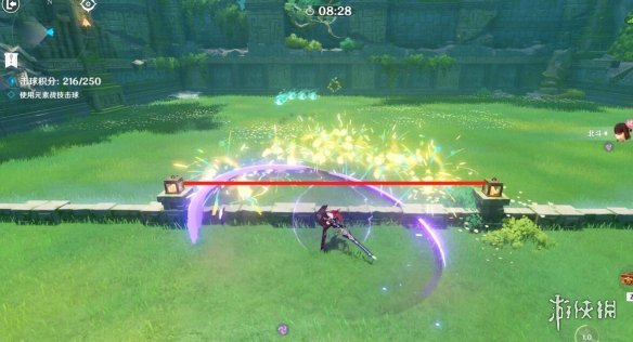 2.在球快到達兩個燈左右的位置,就可以放元素戰技。