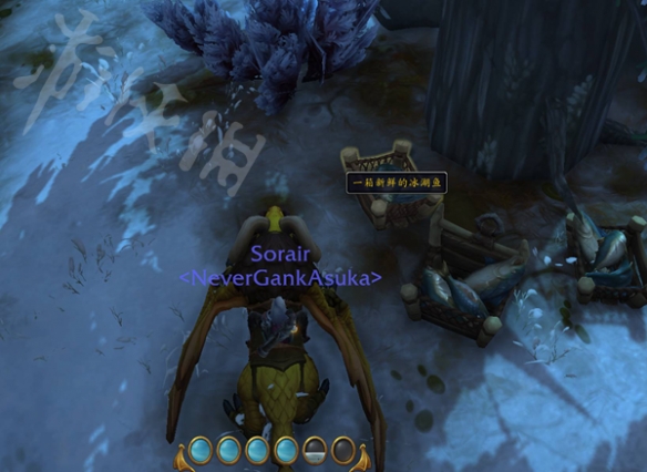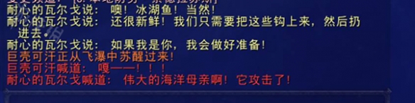 一箱新鮮的冰湖魚持續時間為15分鍾,我們必須在持續時間內儘快飛回索德拉蘇斯巨殼可汗身邊,將一箱新鮮的冰湖魚交給耐心的瓦爾戈。