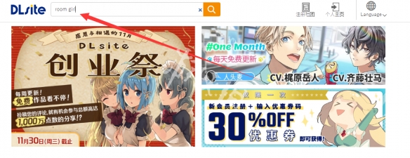 首先打開dlsite首頁,然後在上面的搜索框中搜索room girl。