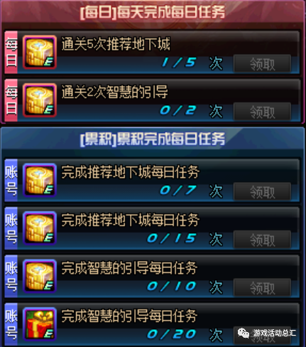 1)活動期間,累積完成「通關5次推薦地下城」任務7次,可獲得100個時間引導石,活動期間每個賬號可獲得1次。