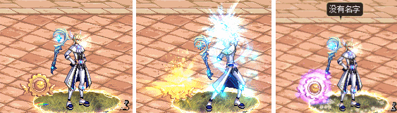 齒輪小精靈寵物為無屬性寵物(永久),待機時的動作會隨機演示彩虹/金光/紫氣三種顏色的光,但被喊到名字時只會出現「紫氣東來」。