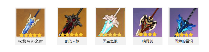 五星武器:鬆籟是優菈專屬武器,其次狼末,天空之傲相較輸出差一點但擬補了優菈缺充能的短板,