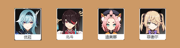 3、優菈主C+北斗副C+迪奧娜奶媽+菲謝爾輔助