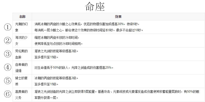 核心命座:一命 和六命,零命可玩,有條件抽一命,土豪隨意抽滿六命。