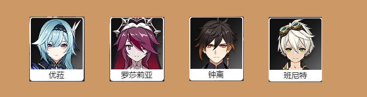 2、優菈主C+羅莎莉亞副C+鍾離套盾+班尼特奶爸增傷