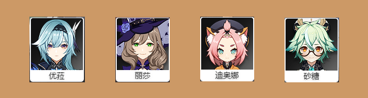 1、優菈主C+麗莎副C+迪奧娜奶媽和套盾+砂糖聚怪