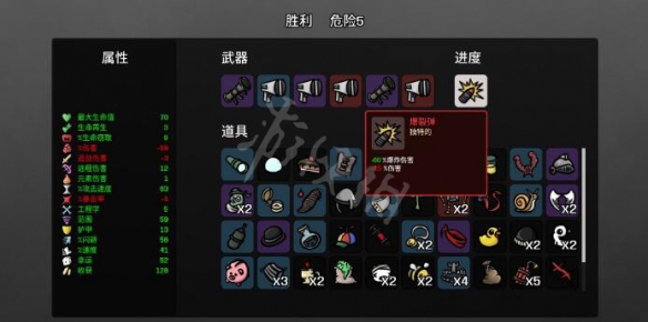 建議前期屬性培養:攻速(狂喝咖啡),幸運收獲,基本不用刻意從升級給的屬性里獲取傷害。有爆炸的相關都需要拿,炸藥有多少拿多少,塑性炸藥也不嫌少。