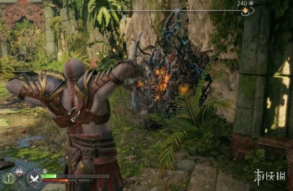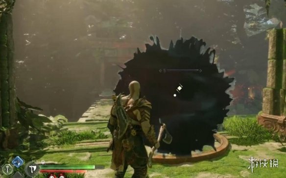 看進去能看到一個靶子(記住,這個遊戲沒有任何一個機關是平白無故設置在這里的),打掉之後,從右側迂迴過去。。