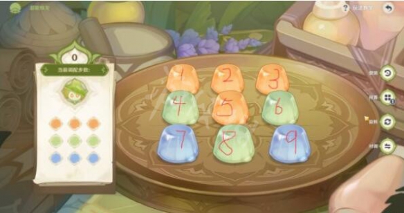 草蕈獸:5689(右下角四個)旋轉一次,預置放在258(中間)的一列,2356(右上角四個)旋轉兩次,6和9對調一次,最後2356(右上角)旋轉一次就完成了。