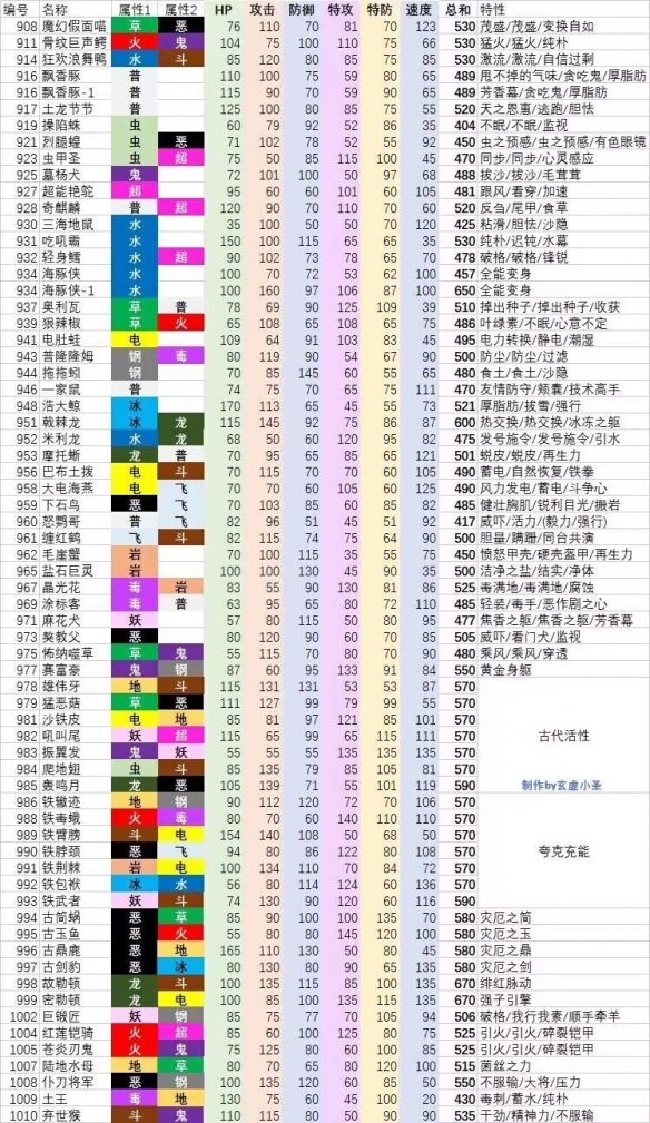 以上就是關於寶可夢朱紫全精靈特性及種族值一覽表的相關內容分享,想要先了解各精靈數值的小夥伴可以看下上面的表格。